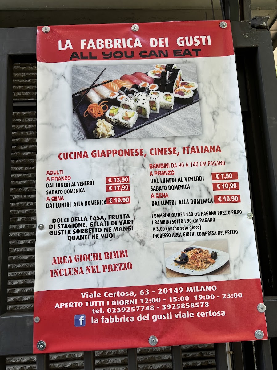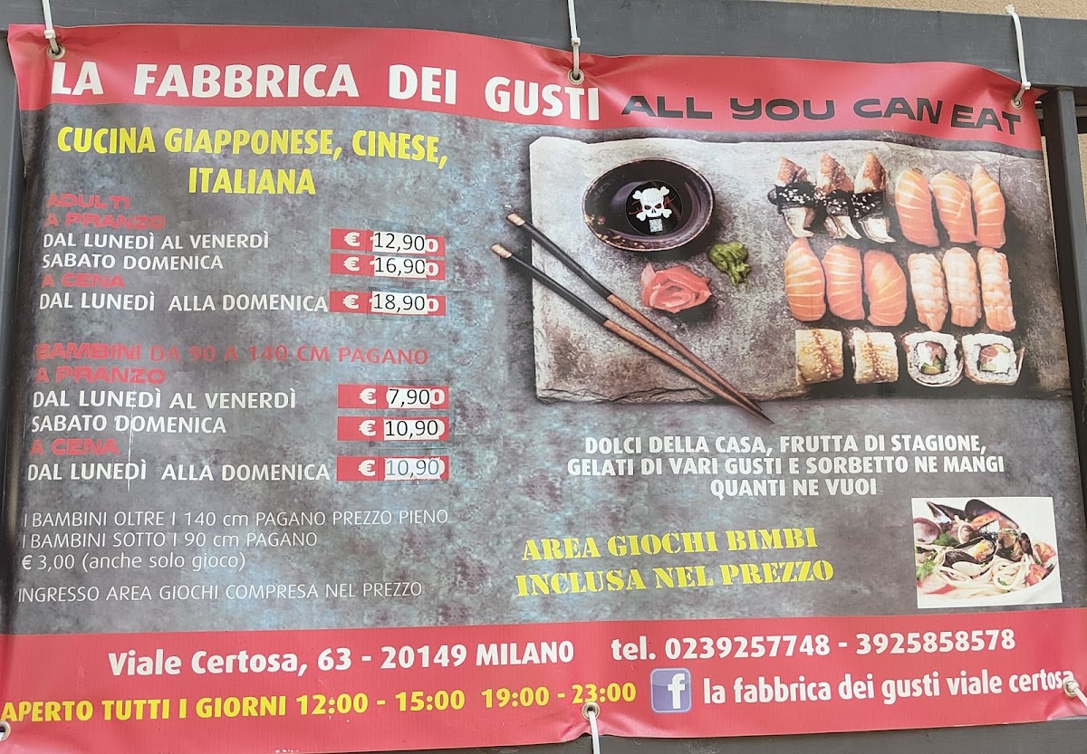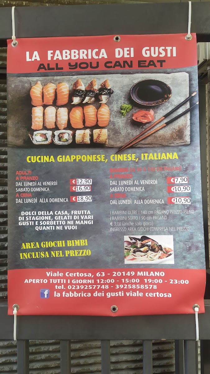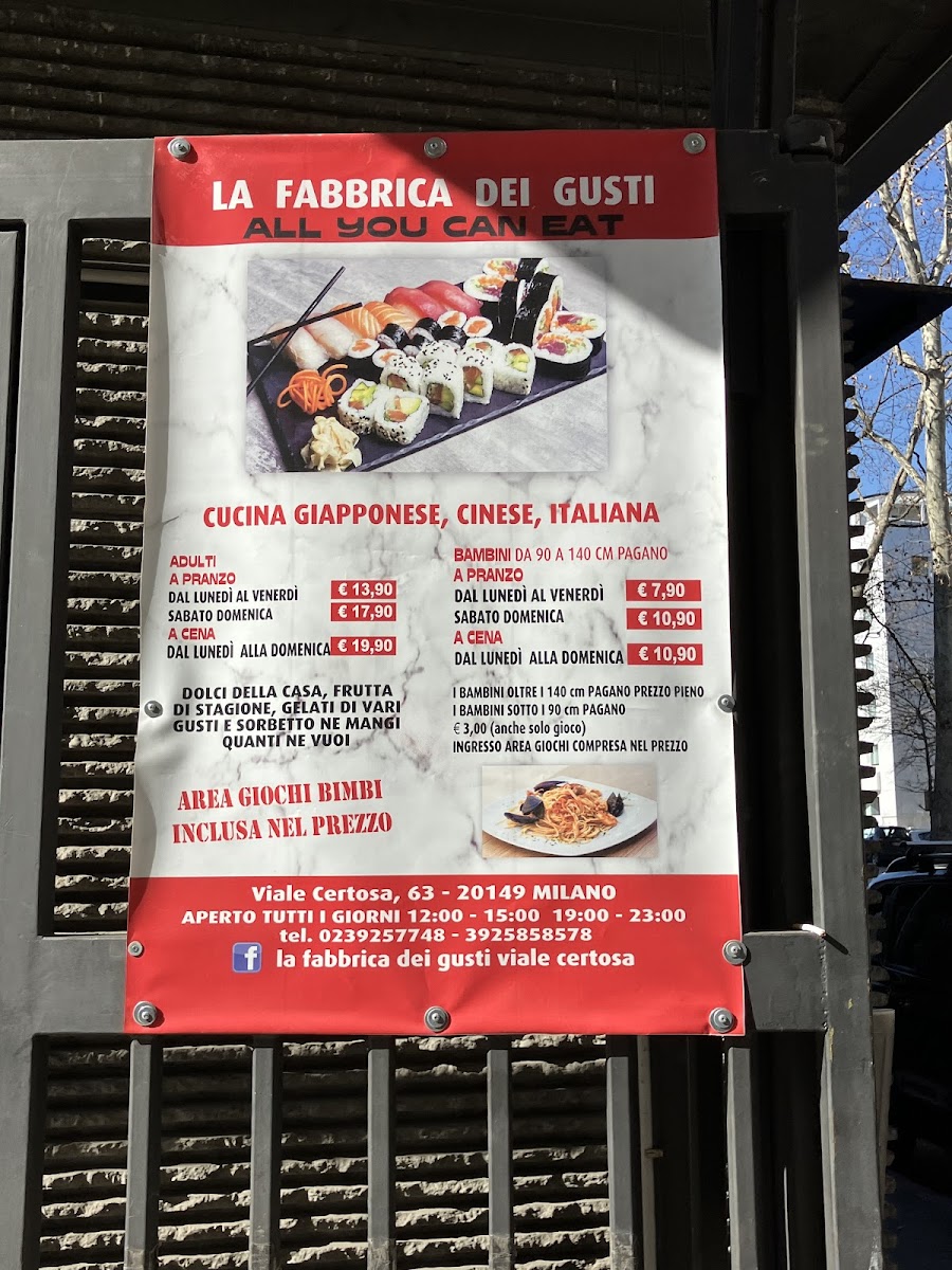 Welcome to La Fabbrica dei Gusti, a hidden gem located in Milan's residential Viale Certosa. This all-you-can-eat haven offers a culinary journey that caters to a diverse palate, featuring an impressive selection of appetizers, pasta, seafood, and desserts. Customers rave about the delicious and varied food, which includes options like fresh prawns, oysters, and an assortment of hams and Chinese and Japanese dishes.